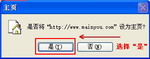 然后在弹出的“是否设为主页”的窗口里选择“是”即可。