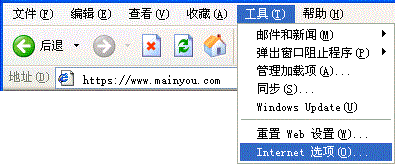 方法二:设置浏览器的“主页”选项 首先,打开浏览器上部菜单栏的“工具”栏,在下拉列表中选择“Internet 选项”,如下图所示: