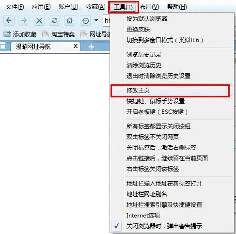 提示:若仍无法设置主页,请点击查看“主页修复”;或“把漫游网址导航下载到桌面” 浏览器参数出错!